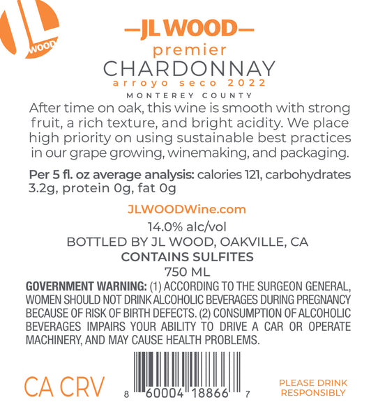 JL Chardonnay Arroyo Seco Monterey County 2022 13.8% ALC/VOL